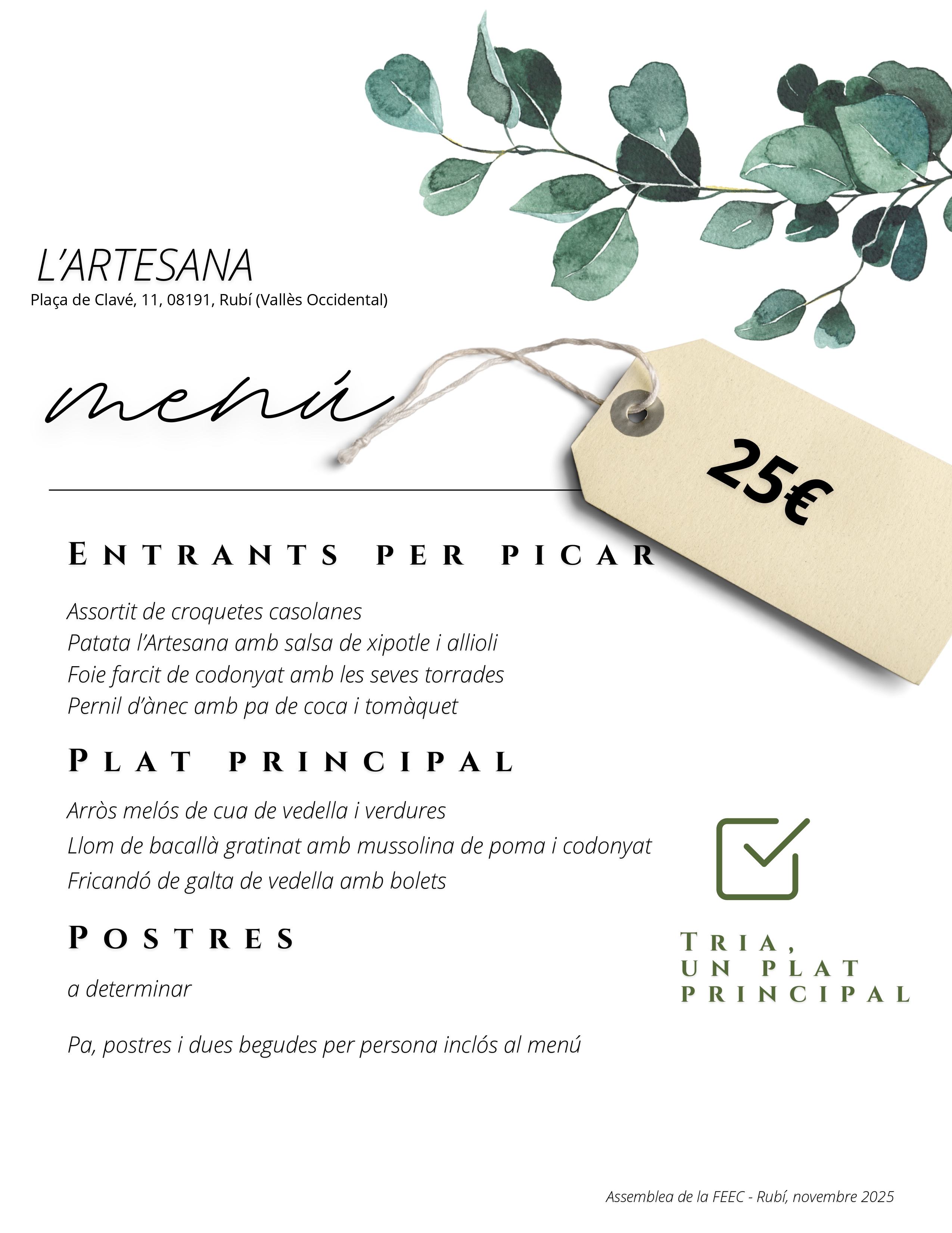 En compliment de l’acord de la Junta Directiva de la FEEC del 16 d’octubre de 2025 es convoca a totes les entitats federades a l’Assemblea General Extraordinària. Aquesta tindrà lloc a Col·legi Regina Carmelí, (c/ Sant Sebastià, 34. 08191 Rubí (entrada per c/ Llobateras amb c/ d’Espoz i Mira -sortida d’emergència-), el dissabte 29 de novembre, a les 9:30 hores en primera convocatòria, i a les 10 hores en segona, organitzada per Centre Excursionista de Rubí.